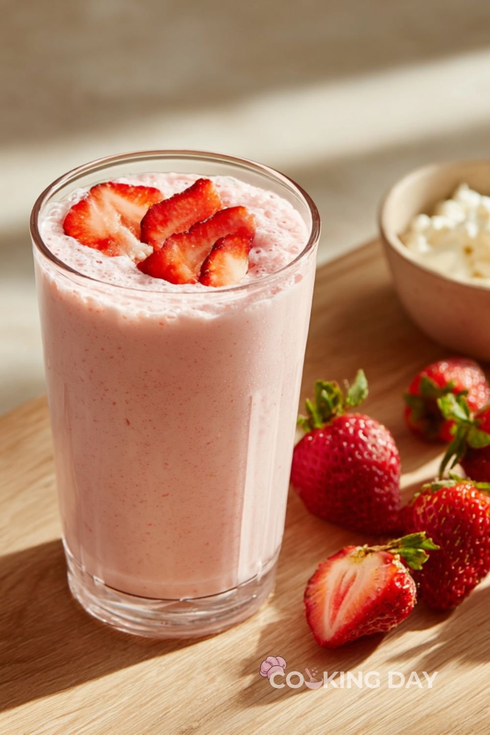 Another reason this smoothie is so popular is that it feels indulgent while still being nutritious. Strawberries bring vitamins and antioxidants, yogurt adds protein and calcium, and the whole drink is light enough to enjoy anytime.
